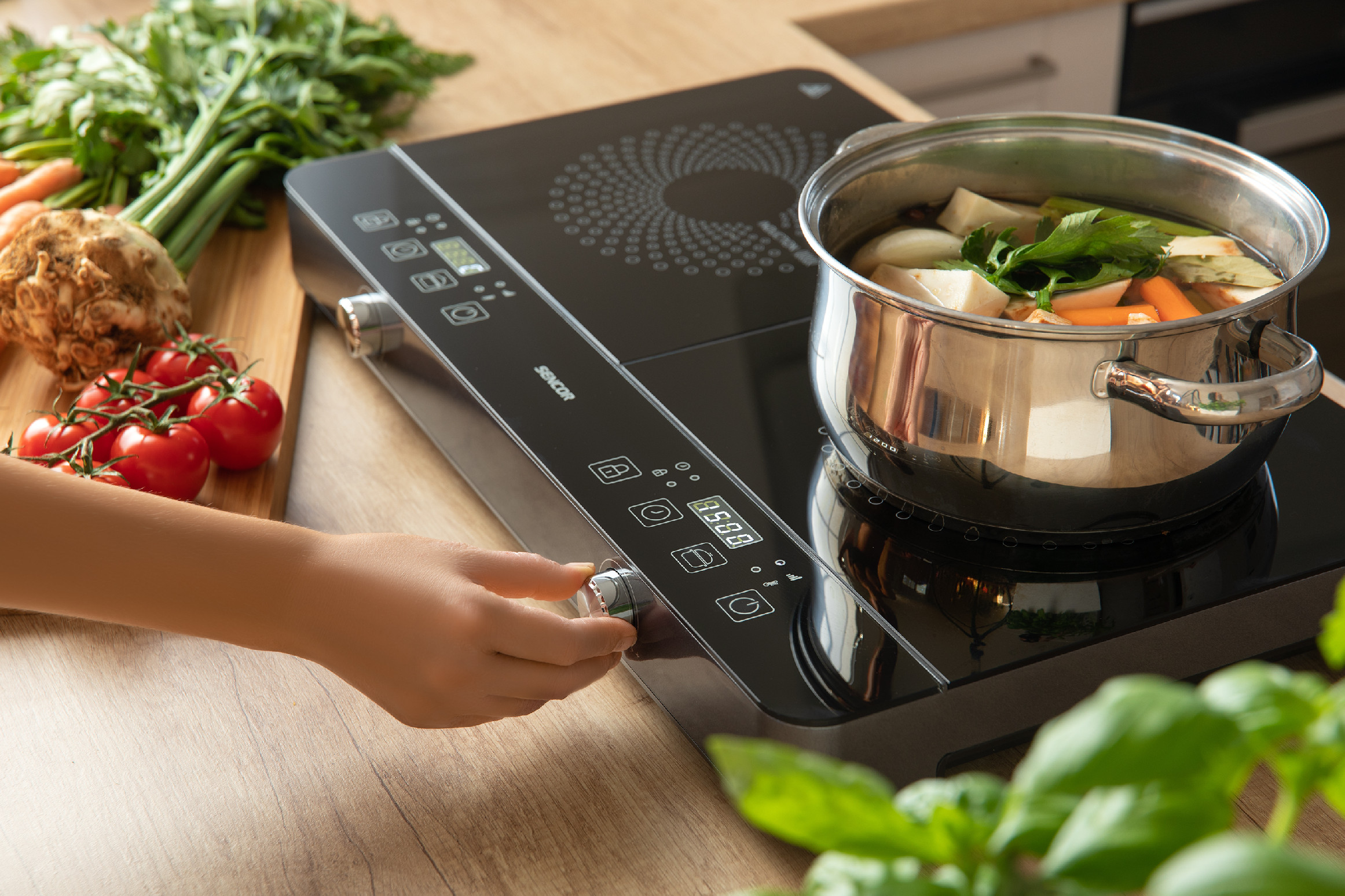 Dvouplotýnkový indukční vařič SENCOR SCP 2253WH-EUE4 si vás získá svým moderním provedením v černé barvě, která krásně doplní jakýkoliv interiér. Sklokeramická deska vařiče je studená na dotek, protože teplo se indukcí vytváří přímo v nádobě (pozor, deska se může částečně ohřát od varné nádoby). Indukční vaření šetří čas (60 %) a elektrickou energii (50 %). Má vysokou účinnost (až 90%) a minimální tepelné ztráty. Vařič a jednotlivé funkce ovládáte dotykovým panelem a klasickým otočným ovladačem pro nastavení teploty a výkonu. O teplotě a výkonu vás informuje přehledný velký LCD displej s červeným podsvícením. Souvislá plocha sklokeramického povrchu kryje celou vrchní stranu vařiče. Proto je snadné udržovat přístroj v čistotě. A protože se teplo potřebné pro vaření generuje v nádobě a varná plocha se přímo nezahřívá (pouze zbytkovým teplem z nádoby) to, co nedopatřením opustí hrnec, se k povrchu vařiče nepřipeče. Indikace zbytkového tepla – pokud teplota povrchu vařiče přesáhne hodnotu 80°C (teplo generované dnem zahřívané nádoby), objeví se na displeji varovná výstraha „HEAT“. Varování zmizí, jakmile teplota povrchu klesne pod 80°C. Deska se automaticky vypne po 2 hodinách nečinnosti.