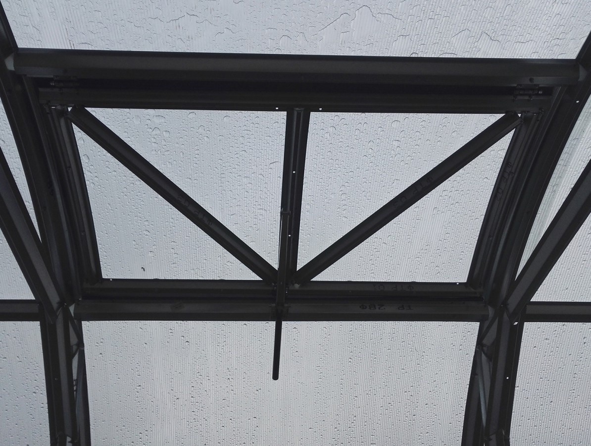 Střešní ventilační okno určené pro zahradní skleník Trjoska (nelze kombinovat s jinými modely Volya). Díky střešnímu oknu můžete lépe regulovat vnitřní teplotu a s automatickým otvíračem nemusíte hlídat skleník. Rám okna je vyroben ze stejného materiálu jako celý skleník Trjoska z profilované pozinkované oceli.