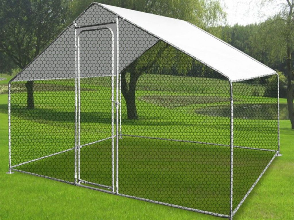Prostorný klecový výběh je vhodný pro drůbež, jako jsou slepice, kachny, husy a krůty.