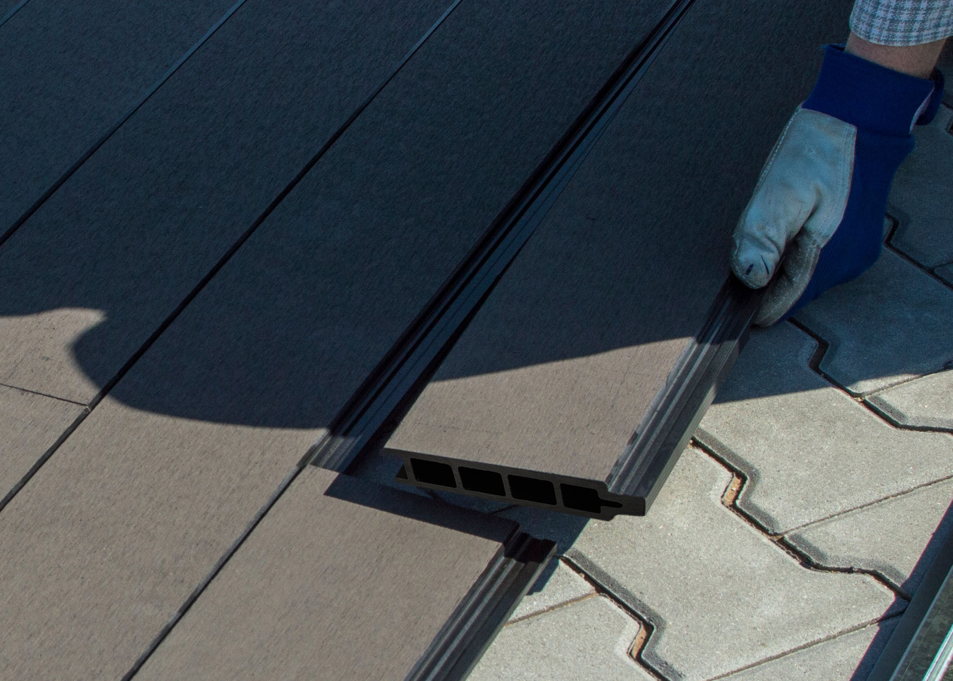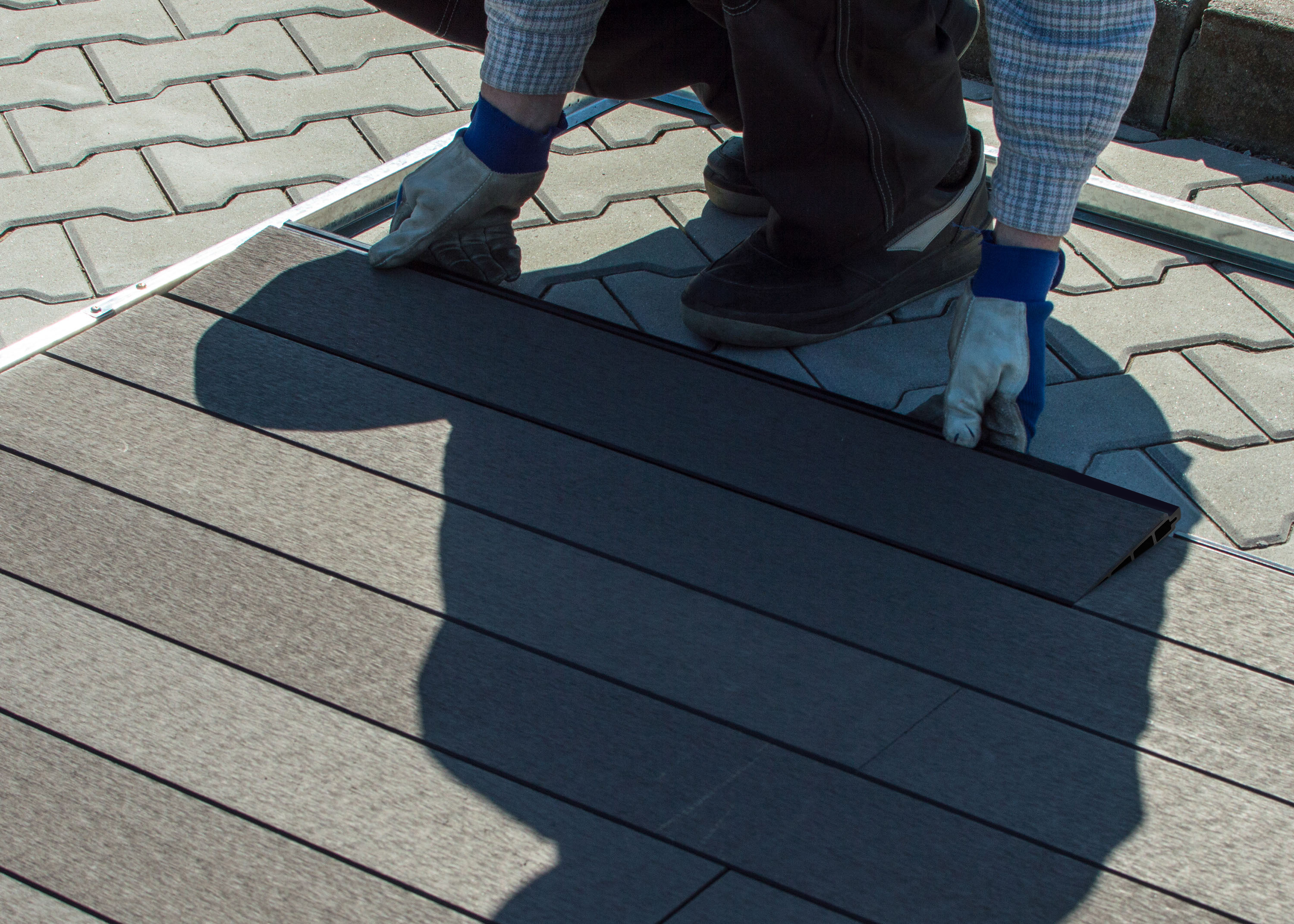 Materiál WPC (Wood plastic components) je směs tvořená z 60 % z dřevitých vláken a ze 40 % z plastu. S pomocí vlivu tlaku a teploty (extrudace) vzniká odolný a bezúdržbový materiál, který je praktický a po všech stránkách vysoce užitkový.