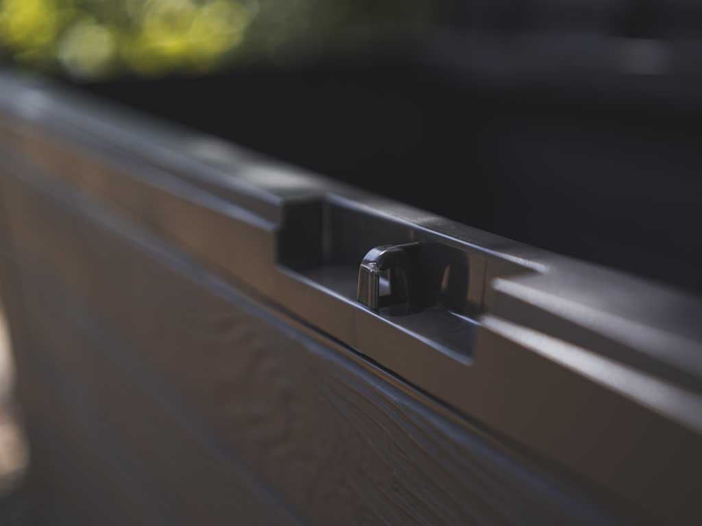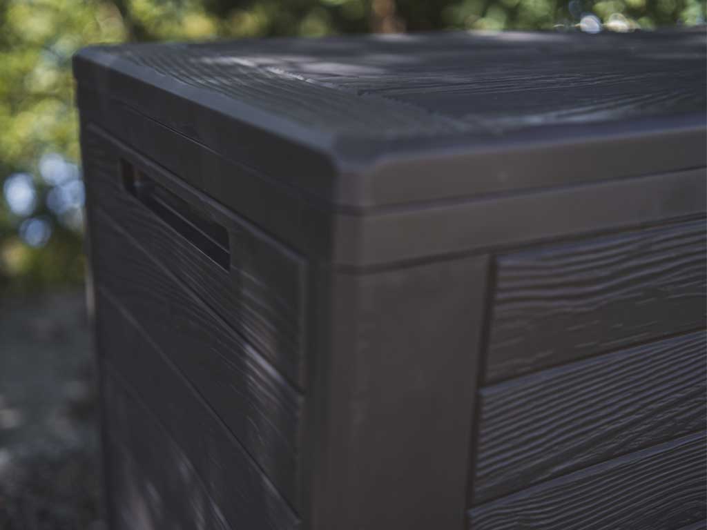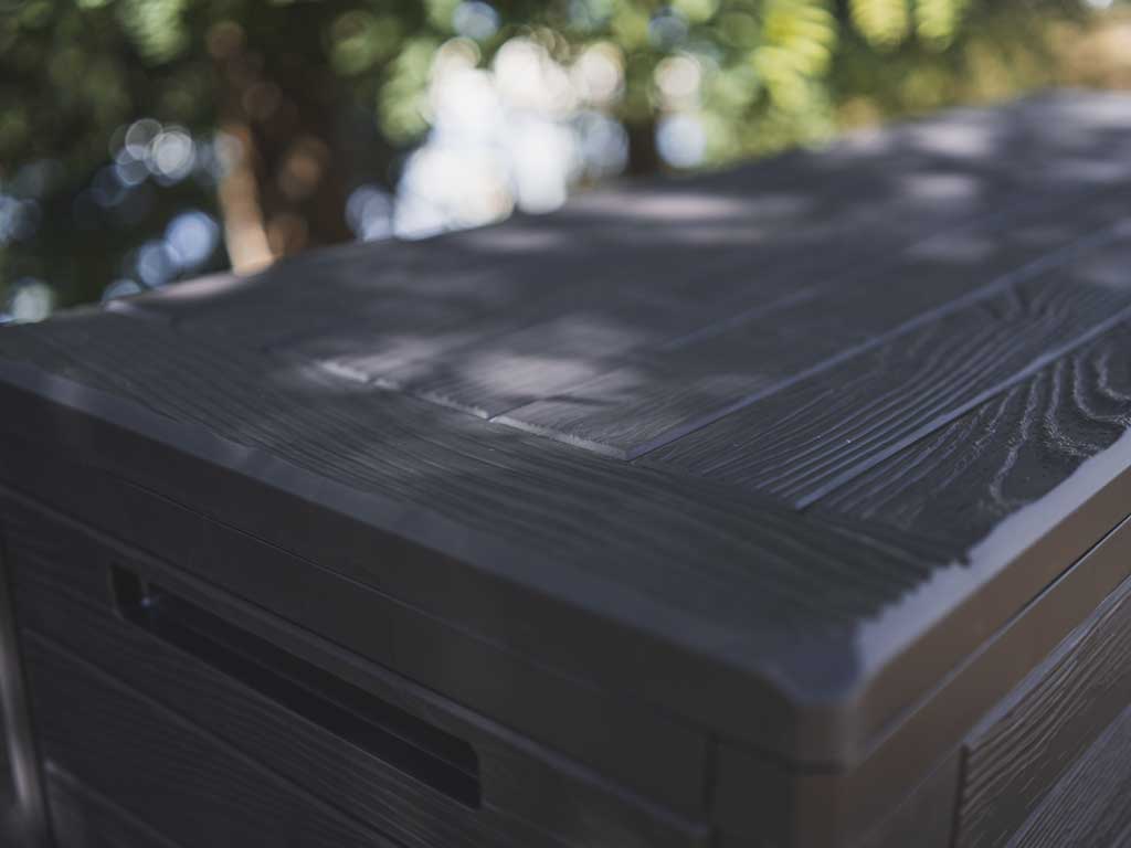 Box je dostupný v elegantním antracitovém odstínu, který se skvěle hodí k jakémukoli zahradnímu nábytku nebo terasovému vybavení. Jeho moderní vzhled dodá vašemu venkovnímu prostoru šmrnc a styl, aniž by působil rušivě. Snadno se integruje do jakéhokoli designu vaší zahrady či terasy.