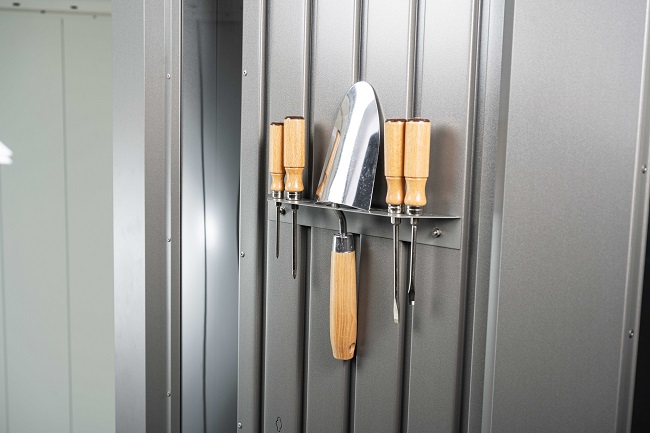 Použité materiály jsou to nejlepší, co lze získat – pozinkovaný ocelový plech s polyamidovým povrchem, šrouby a panty vyrobené z nerezové oceli. Domek je bezúdržbový a je na něj poskytována záruka 20 let. Dveře se pohodlně otevírají pomocí plynové pružiny a můžete si vybrat volitelné vnitřní obložení a izolaci, což vám umožní ještě lepší využití.