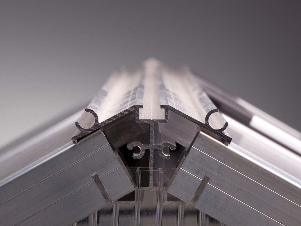 Pohodlná výška stěny 1,60 m usnadňuje stání a práci ve vzpřímené poloze. To znamená, že rajčata a okurky mohou bez problémů růst do výšky a plně se rozvíjet. Robustní hliníková konstrukce spolu s 16 mm komůrkovými deskami ISO zajišťují optimální stabilitu. Praktické okapy s odtoky na obou stranách umožní svod dešťové vody do sudu.