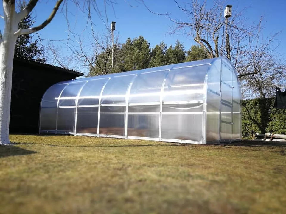 Zahradní skleník LEGI KALE 12 x 3 m, 4 mm (Oblouková konstrukce) – konstrukce z ocel – pozinkované profily (síla profilu 1 mm) v barvě stříbrná.