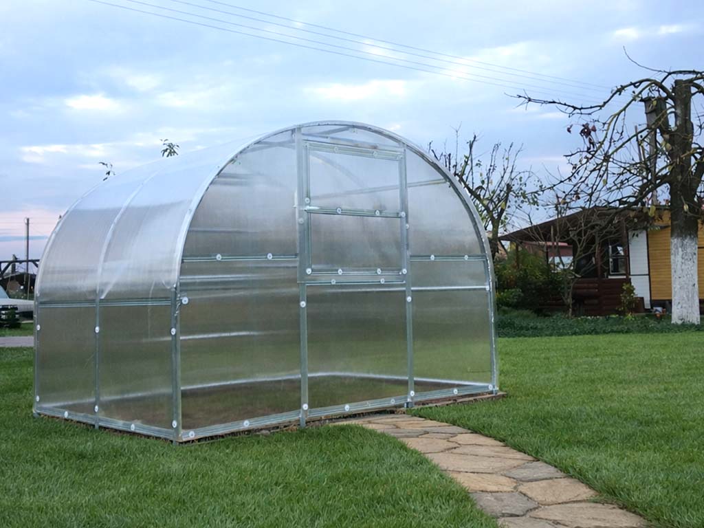 Zahradní skleník LEGI KALE 2 x 3 m, 6 mm (Oblouková konstrukce) – konstrukce z ocel – pozinkované profily (síla profilu 1 mm) v barvě stříbrná.