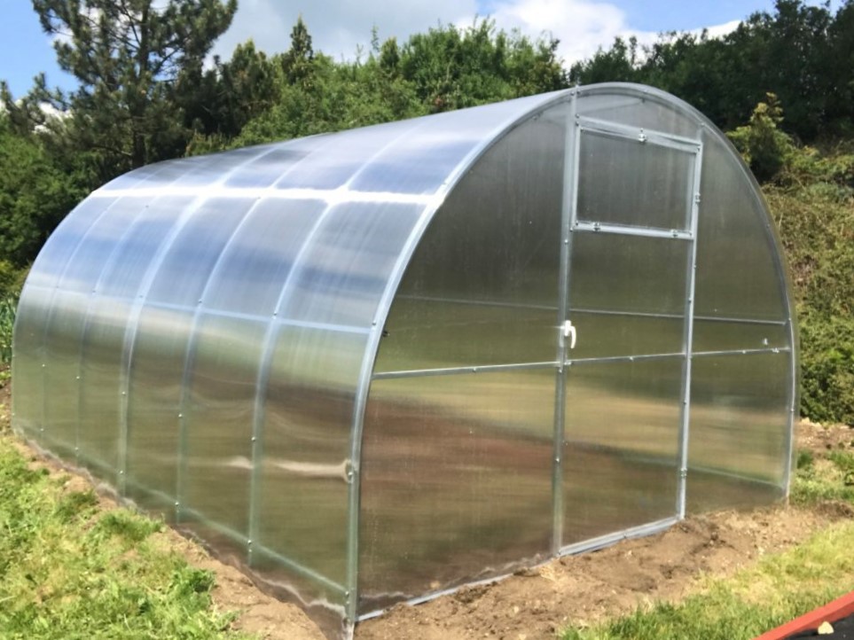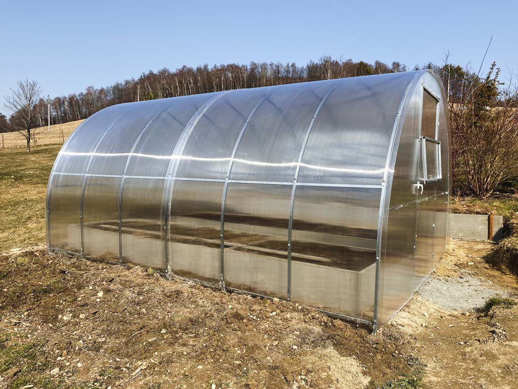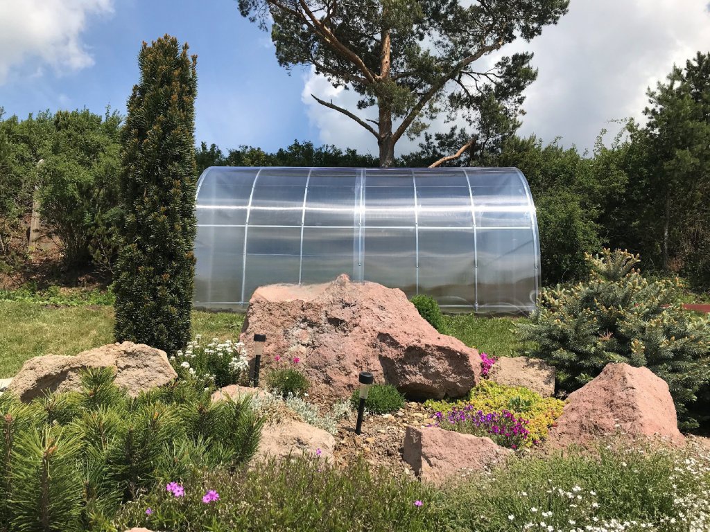 Zasklení skleníku je tvořeno čirým dutinkovým (komůrkovým) polykarbonátem o tloušťce 6 mm s UV ochranou, která zamezuje křehnutí materiálu a změně barvy. Polykarbonát je samozřejmě certifikovaný a splňuje veškeré podmínky zdravotní nezávadnosti.