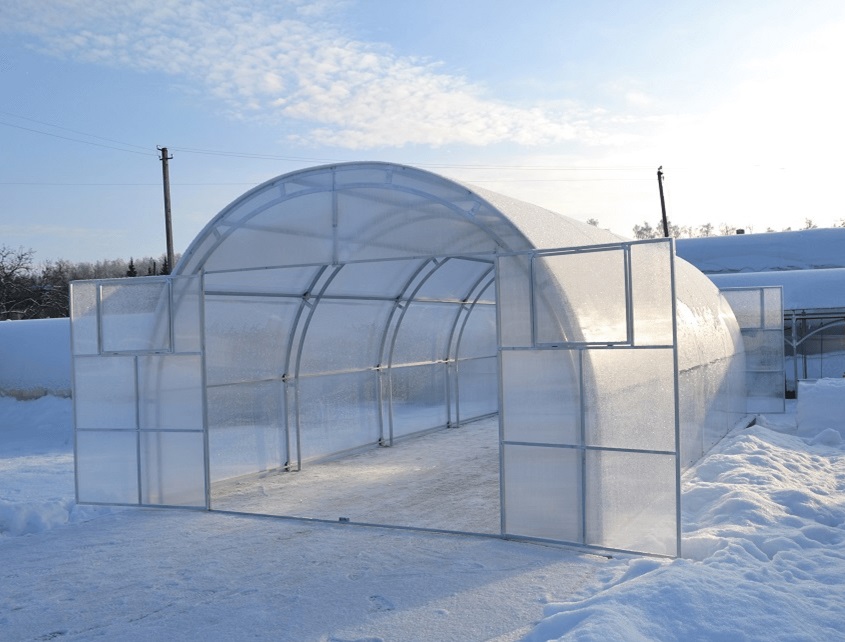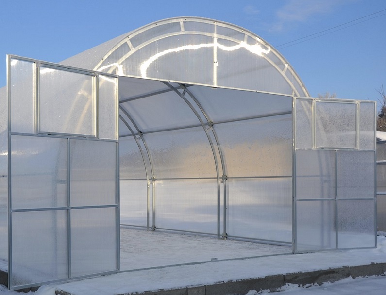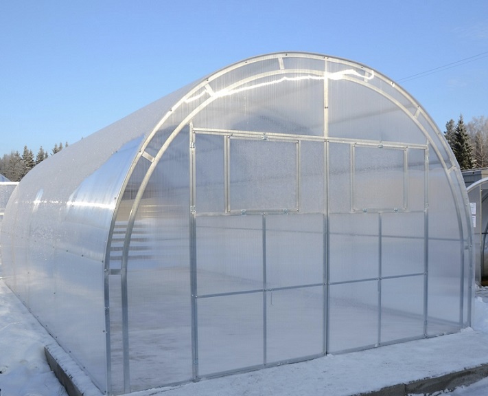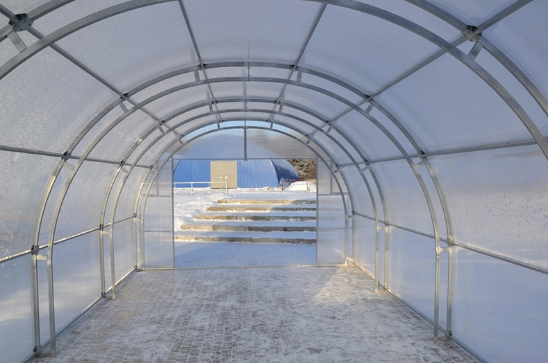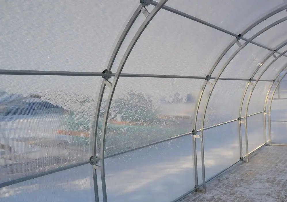 Zasklení skleníku je tvořeno čirým dutinkovým (komůrkovým) polykarbonátem o tloušťce 4 mm s UV ochranou, která zamezuje křehnutí materiálu a změně barvy. Polykarbonát je samozřejmě certifikovaný a splňuje veškeré podmínky zdravotní nezávadnosti.