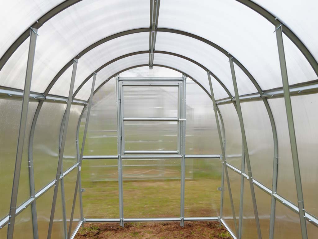 Zahradní skleník z polykarbonátu LEGI Mint je novým přírůstkem mezi oblíbené obloukové skleníky. Konstrukce skleníku je vyrobena z žárově pozinkovaných profilů o síle 1 mm a splňuje obzvláště vysoké požadavky na kvalitu a odolnost. Opláštění skleníku je tvořeno 4 mm vysokogramážním dutinkovým polykarbonátem s jednostrannou UV ochranou, který má zvýšené tepelně izolační vlastnosti.