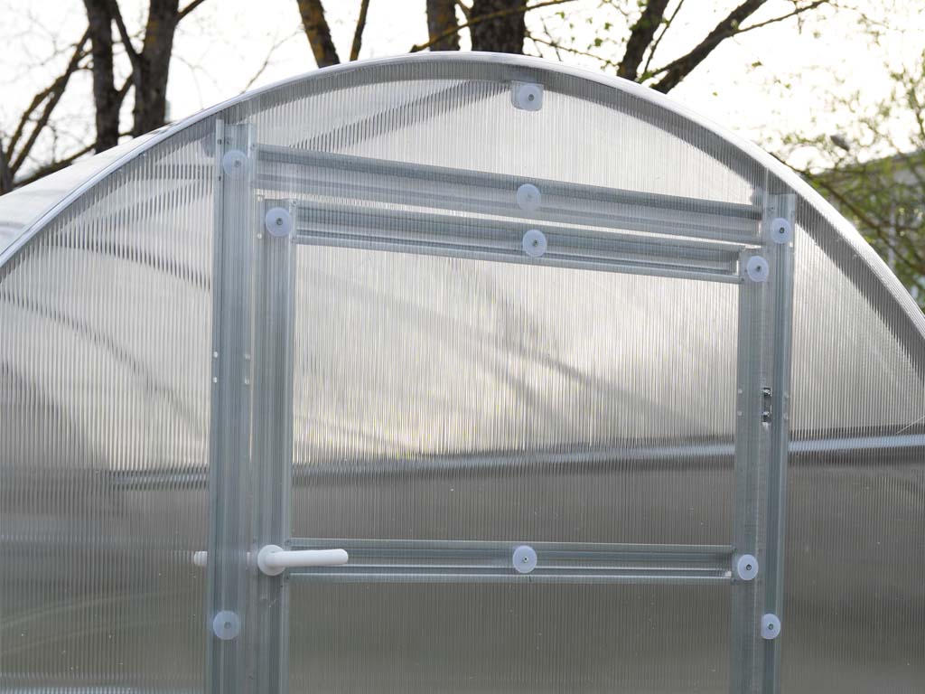 Již žádné větrem vypadané polykarbonátové výplně! Krycí plast z polykarbonátu je v celku. LEGI Mint obsahuje vzpěry, které zpevňují skleník před větrem a sněhem. Pro podmínky do 500 m n. m. zcela ideální. Na zahradní skleník LEGI Mint poskytujeme záruku 3 roky na konstrukci a 3 roky na polykarbonátové desky.