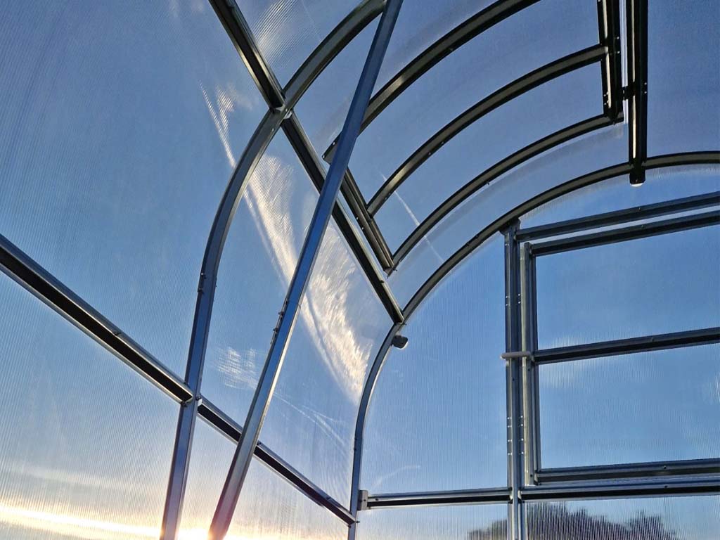 Obloukový skleník LEGI Mint z polykarbonátu je novým přírůstkem mezi oblíbené obloukové skleníky. Konstrukce skleníku je vyrobena z žárově pozinkovaných profilů o síle 1 mm a splňuje obzvláště vysoké požadavky na kvalitu a odolnost. Výhodou tohoto skleníku je bezúdržbový základový profil, který zajišťuje stabilitu konstrukce.