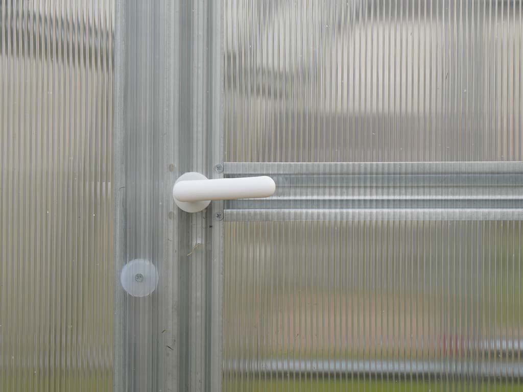 Zasklení skleníku je tvořeno 4 mm vysokogramážním dutinkovým (komůrkovým) polykarbonátem s jednostrannou UV ochranou, který má zvýšené tepelně izolační vlastnosti. Polykarbonát splňuje veškeré podmínky zdravotní nezávadnosti a je na něj záruka 10 let. Můžete si také vybrat variantu se širším prosklením 6 mm. Skleník LEGI Mint je možné kotvit uživatelsky velmi snadným způsobem – zapuštěním do země v hloubce 35 cm. Fixaci skleníku zajišťují silné kotvy ve tvaru „T“, které nedovolí jeho uvolnění.