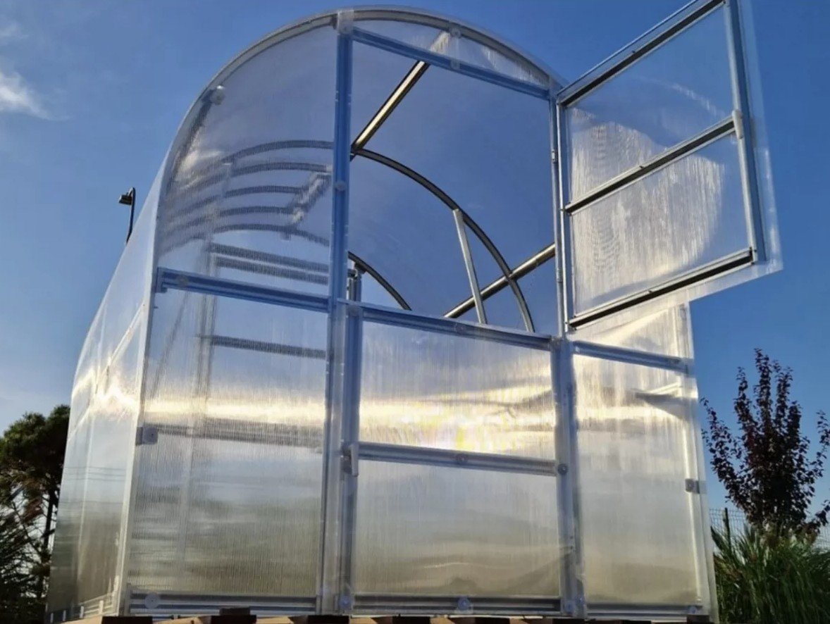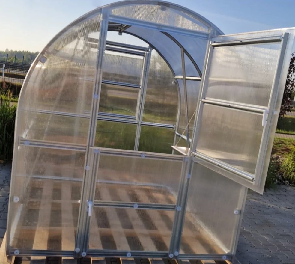 Zahradní skleník z polykarbonátu LEGI Mint je novým přírůstkem mezi oblíbené obloukové skleníky. Konstrukce skleníku je vyrobena z žárově pozinkovaných profilů o síle 1 mm a splňuje obzvláště vysoké požadavky na kvalitu a odolnost. Opláštění skleníku je tvořeno 4 mm vysokogramážním dutinkovým polykarbonátem s jednostrannou UV ochranou, který má zvýšené tepelně izolační vlastnosti.