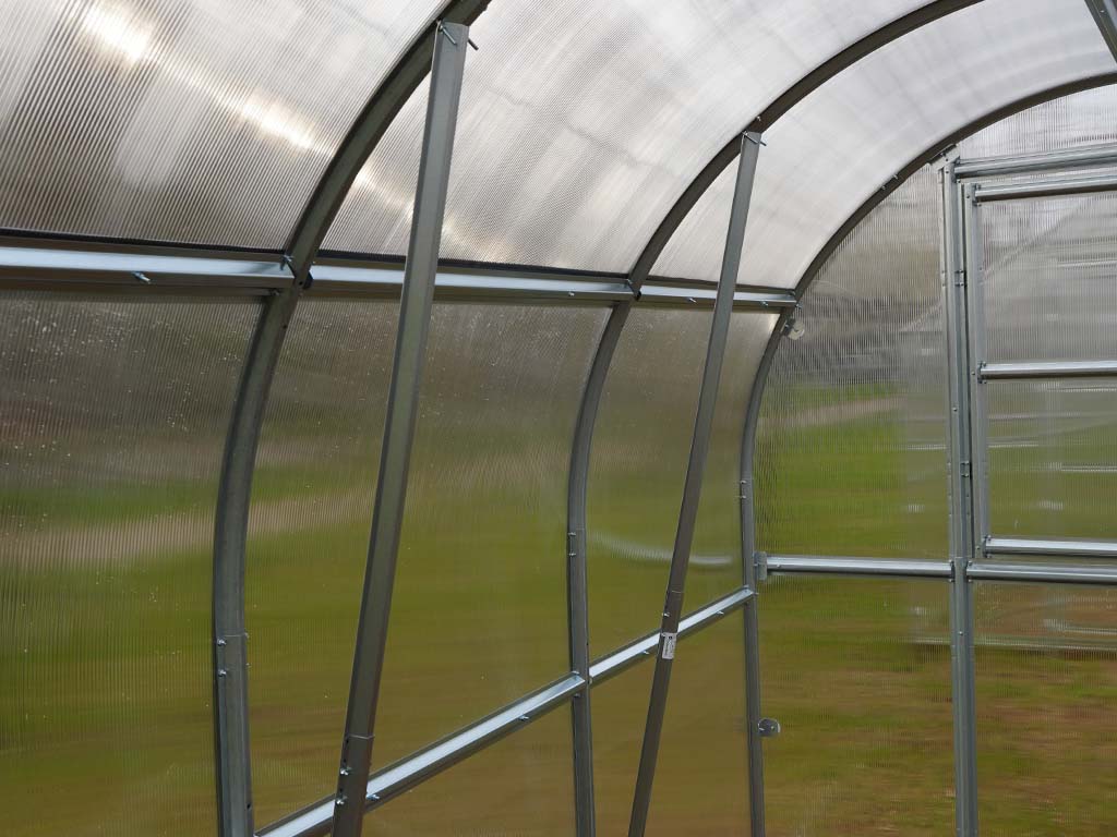 Zahradní skleník z polykarbonátu LEGI Mint je novým přírůstkem mezi oblíbené obloukové skleníky. Konstrukce skleníku je vyrobena z žárově pozinkovaných profilů o síle 1 mm a splňuje obzvláště vysoké požadavky na kvalitu a odolnost. Opláštění skleníku je tvořeno 6 mm vysokogramážním dutinkovým polykarbonátem s jednostrannou UV ochranou, který má zvýšené tepelně izolační vlastnosti.