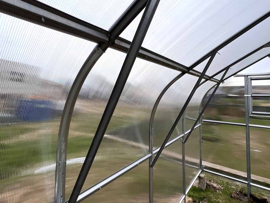 Zahradní skleník LEGI ONION R 2 x 2,5 m, 4 mm (Oblouková konstrukce) – konstrukce z ocel – pozinkované profily (síla profilu 1 mm) v barvě stříbrná.