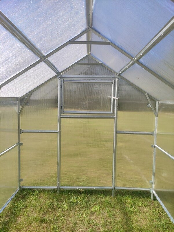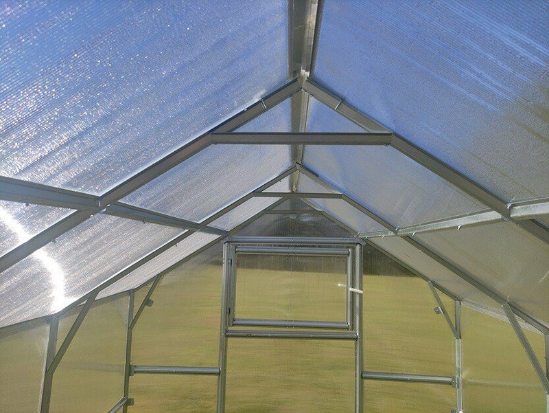 Zahradní skleník LEGI RUBARB 2 x 2,35 m, 4 mm (Hranatá konstrukce) – konstrukce z ocel – pozinkované profily (síla profilu 1 mm) v barvě stříbrná.
