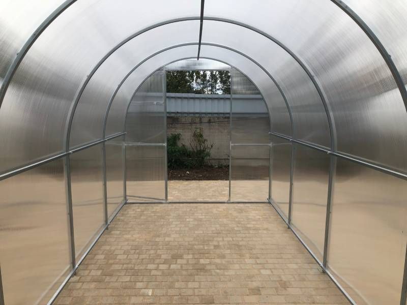 Zasklení skleníku je tvořeno čirým dutinkovým (komůrkovým) polykarbonátem o tloušťce 6 mm s UV ochranou, která zamezuje křehnutí materiálu a změně barvy. Polykarbonát je samozřejmě certifikovaný a splňuje veškeré podmínky zdravotní nezávadnosti.