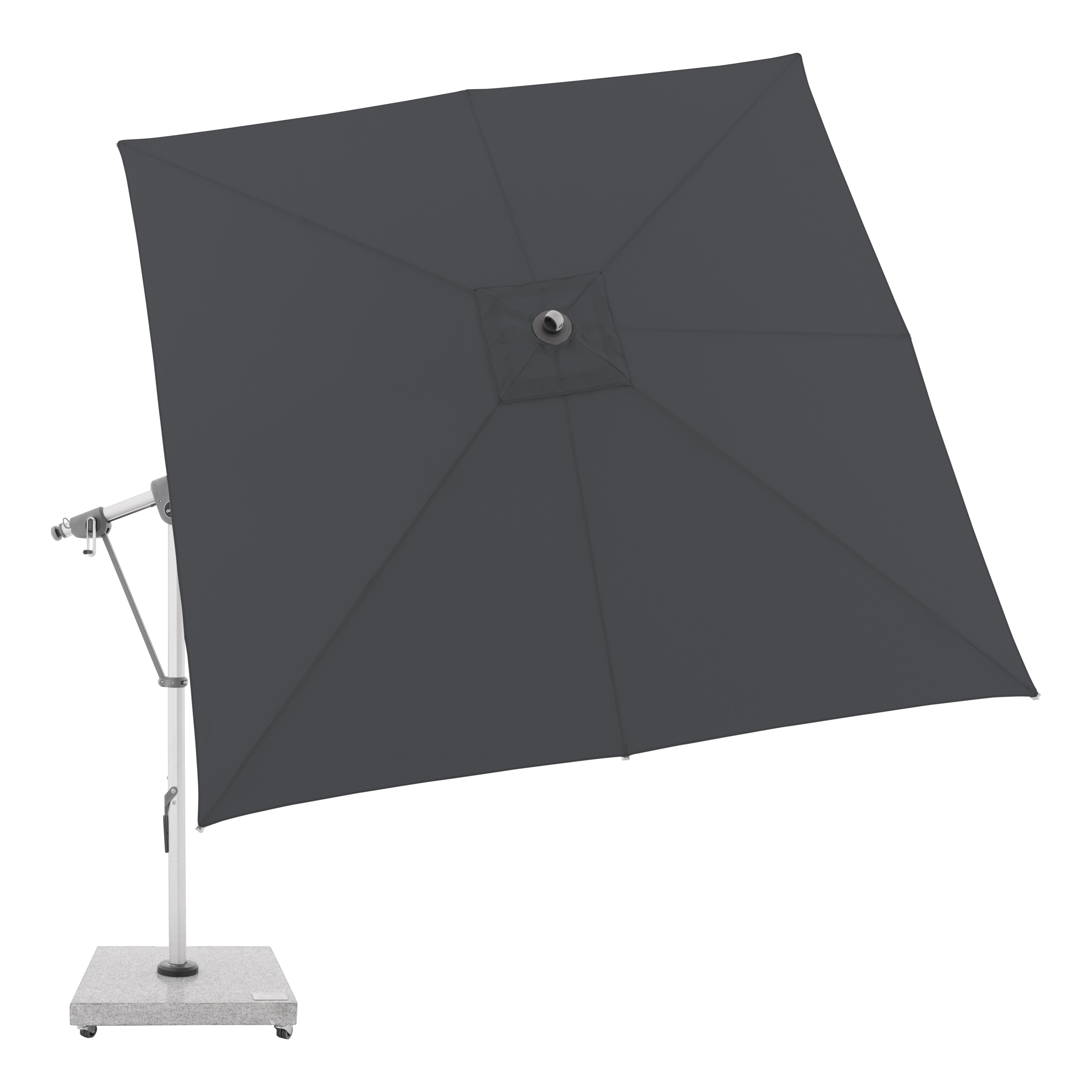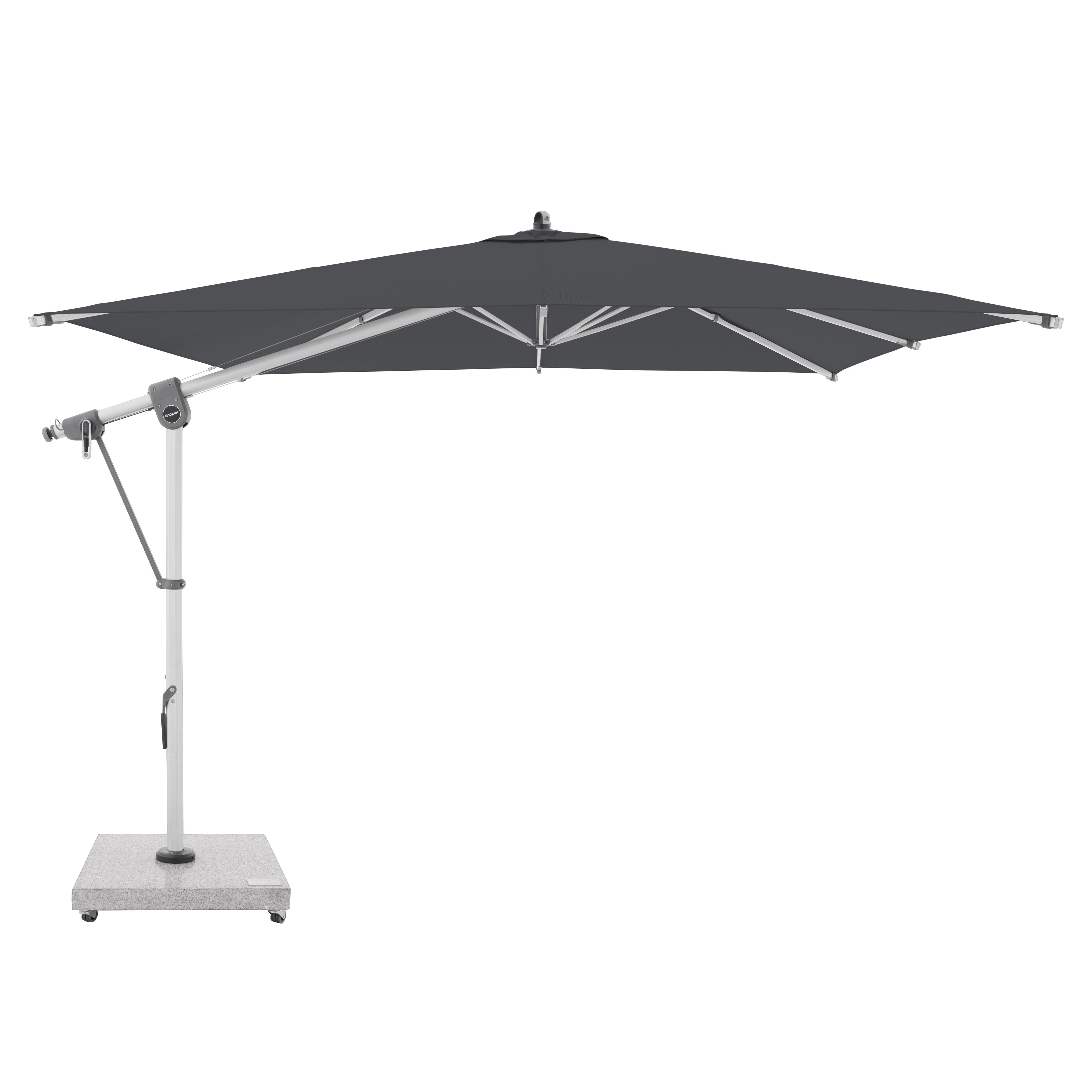 Tento multifunkční výkyvný slunečník s boční tyčí Doppler Expert 3 x 3 m lze optimálně přizpůsobit poloze slunce díky své schopnosti otáčení o 360° a oboustrannému bočnímu naklápění střechy. Konstrukce je vyrobena z vysoce jakostního hliníku a všechny díly jsou šroubované. Potah je vyroben z polyesterové tkaniny odpuzující vodu s dobrou UV ochranou 80+. Potah je snímatelný, s možností ručního praní. Vodoodpudivý potah je s impregnací proti špíně a plísni včetně ochranného obalu, který chrání slunečník před nepřízní počasí. Instalace na žulový sokl nebo zemní kotvu.