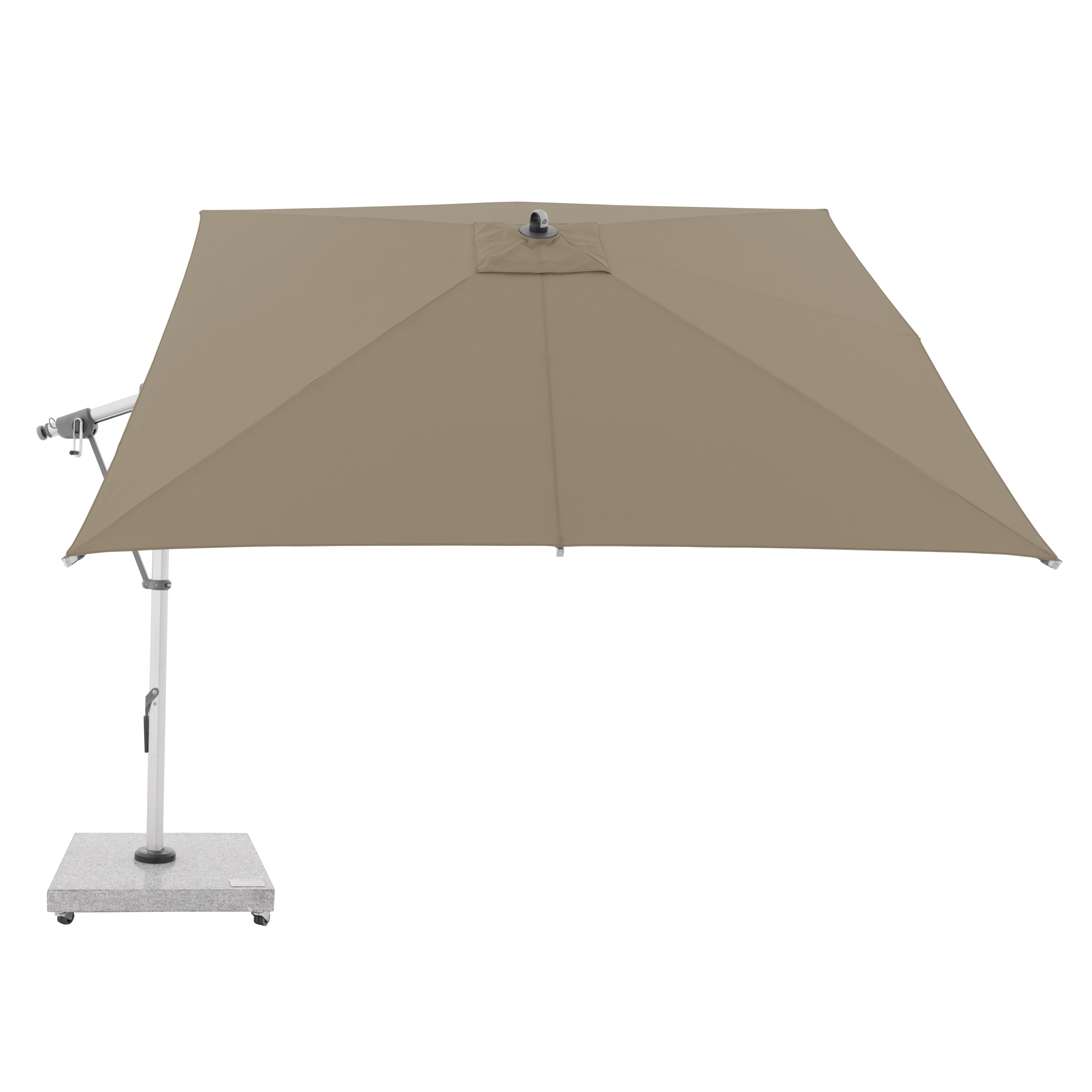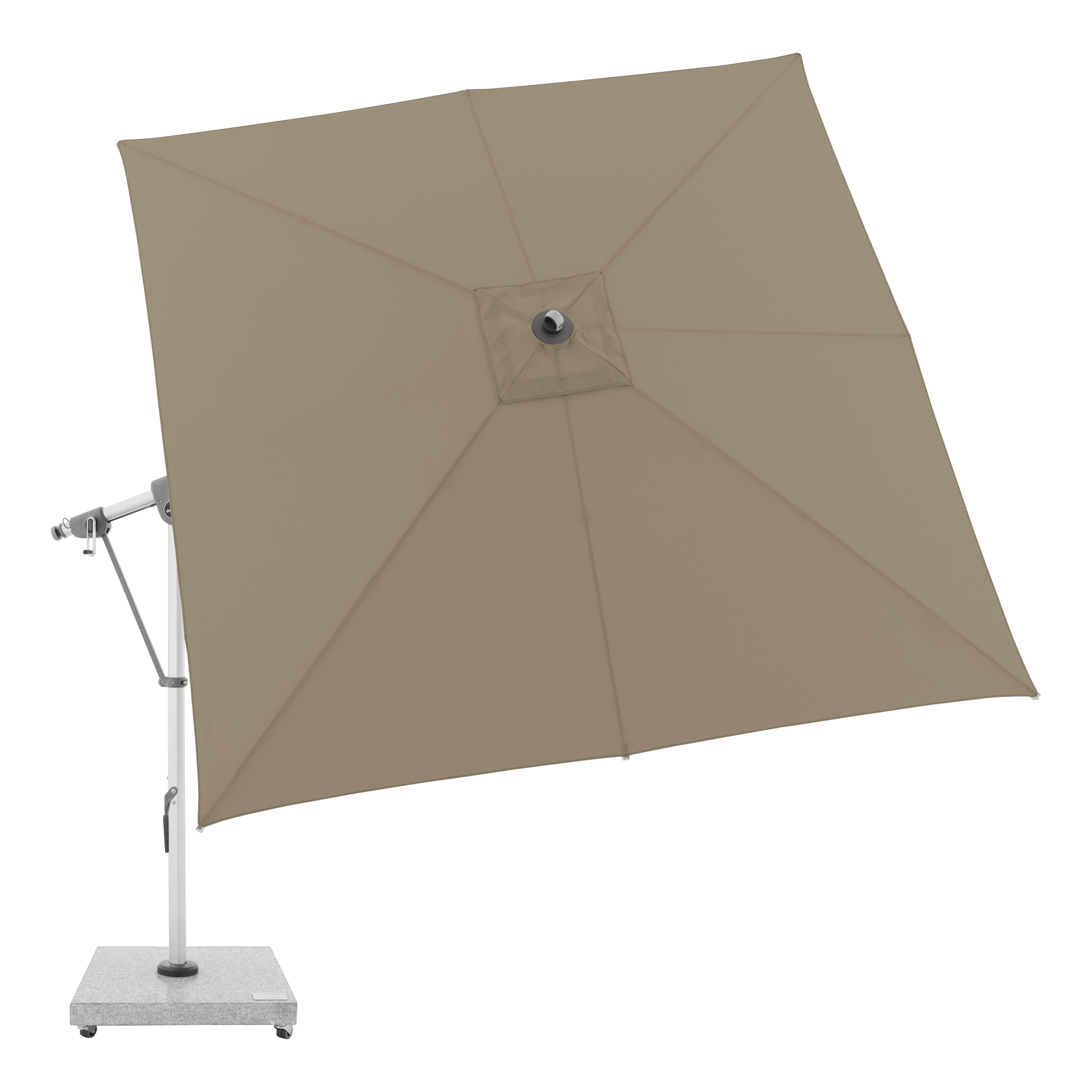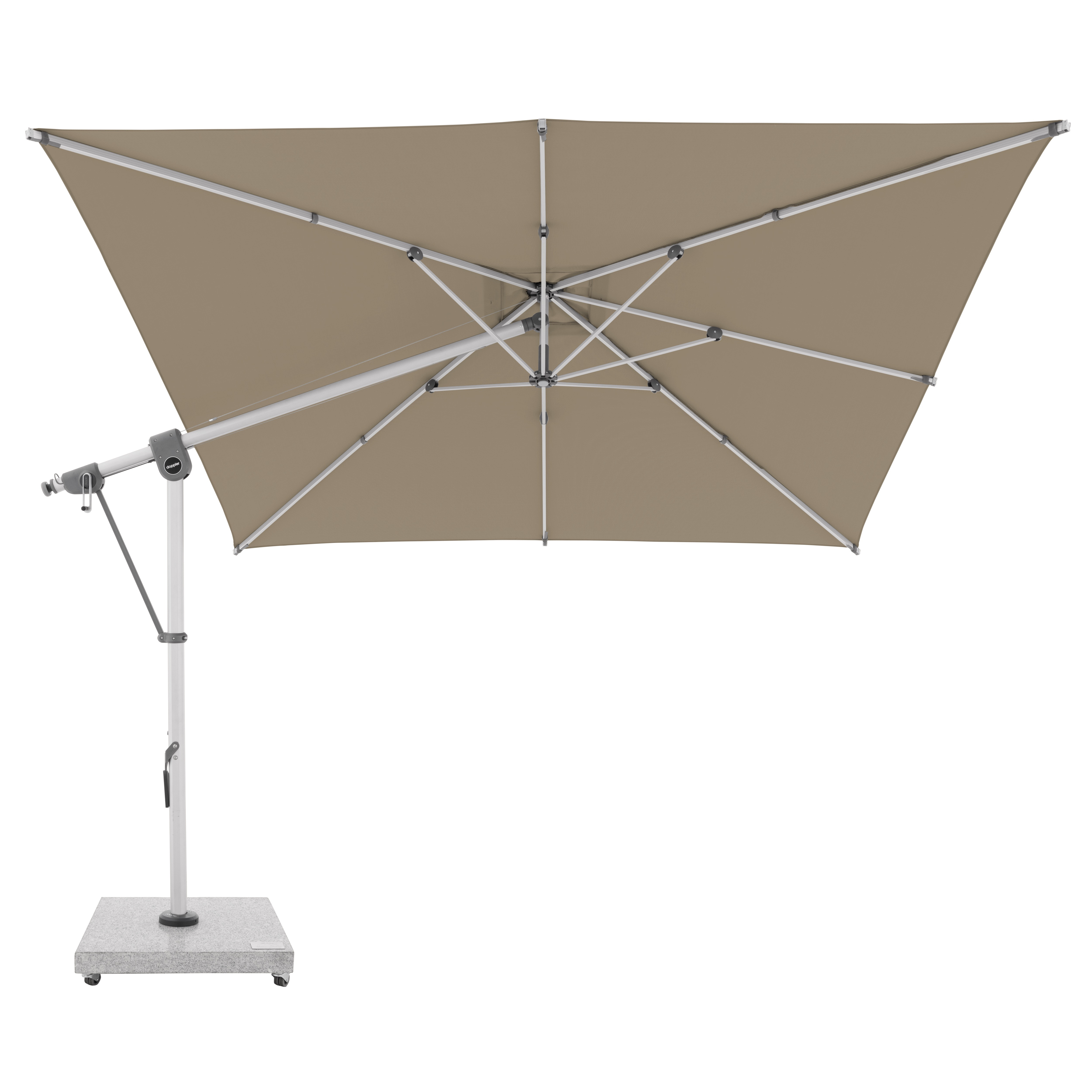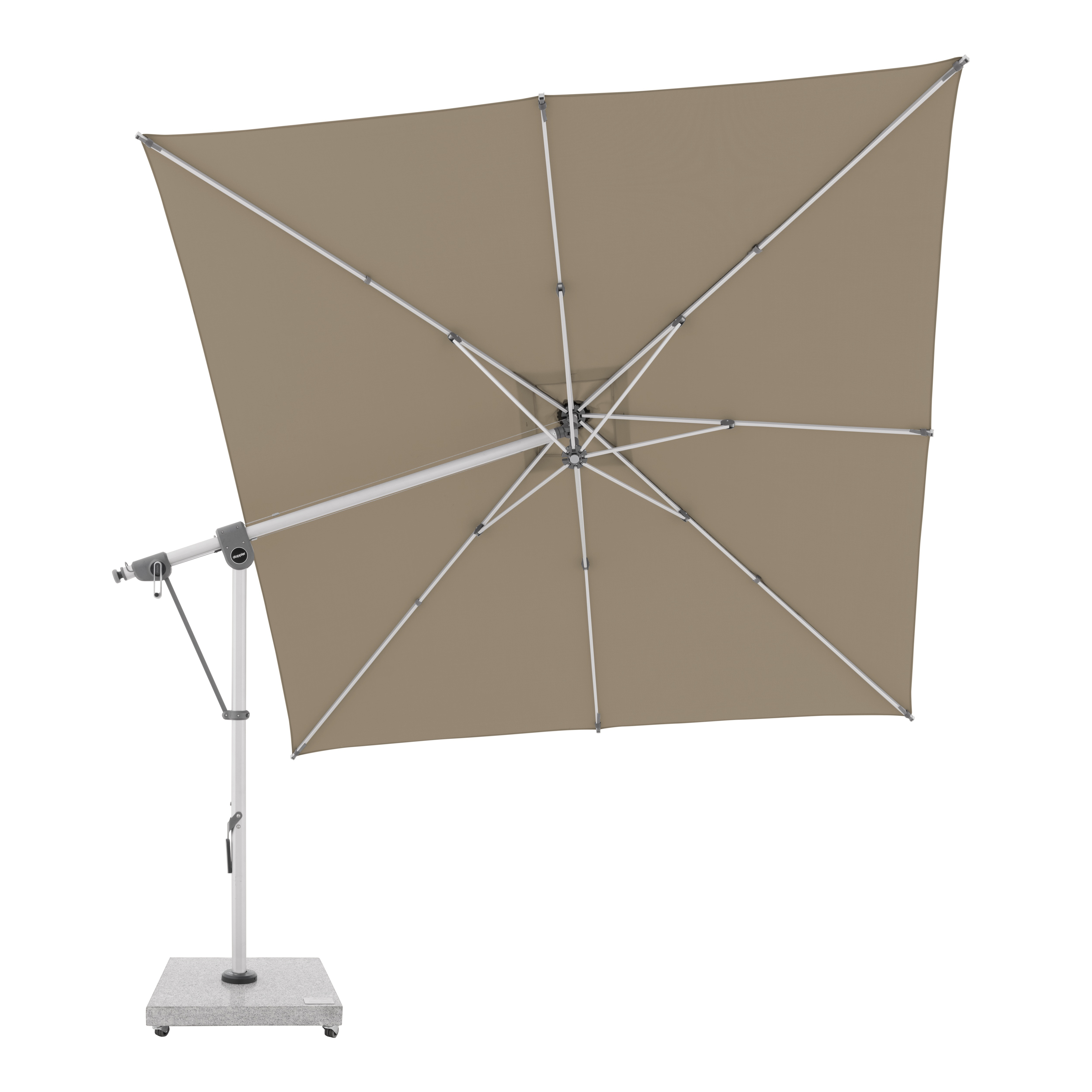 Tento multifunkční výkyvný slunečník s boční tyčí Doppler Expert 3 x 3 m lze optimálně přizpůsobit poloze slunce díky své schopnosti otáčení o 360° a oboustrannému bočnímu naklápění střechy. Konstrukce je vyrobena z vysoce jakostního hliníku a všechny díly jsou šroubované. Potah je vyroben z polyesterové tkaniny odpuzující vodu s dobrou UV ochranou 80+. Potah je snímatelný, s možností ručního praní. Vodoodpudivý potah je s impregnací proti špíně a plísni včetně ochranného obalu, který chrání slunečník před nepřízní počasí. Instalace na žulový sokl nebo zemní kotvu.