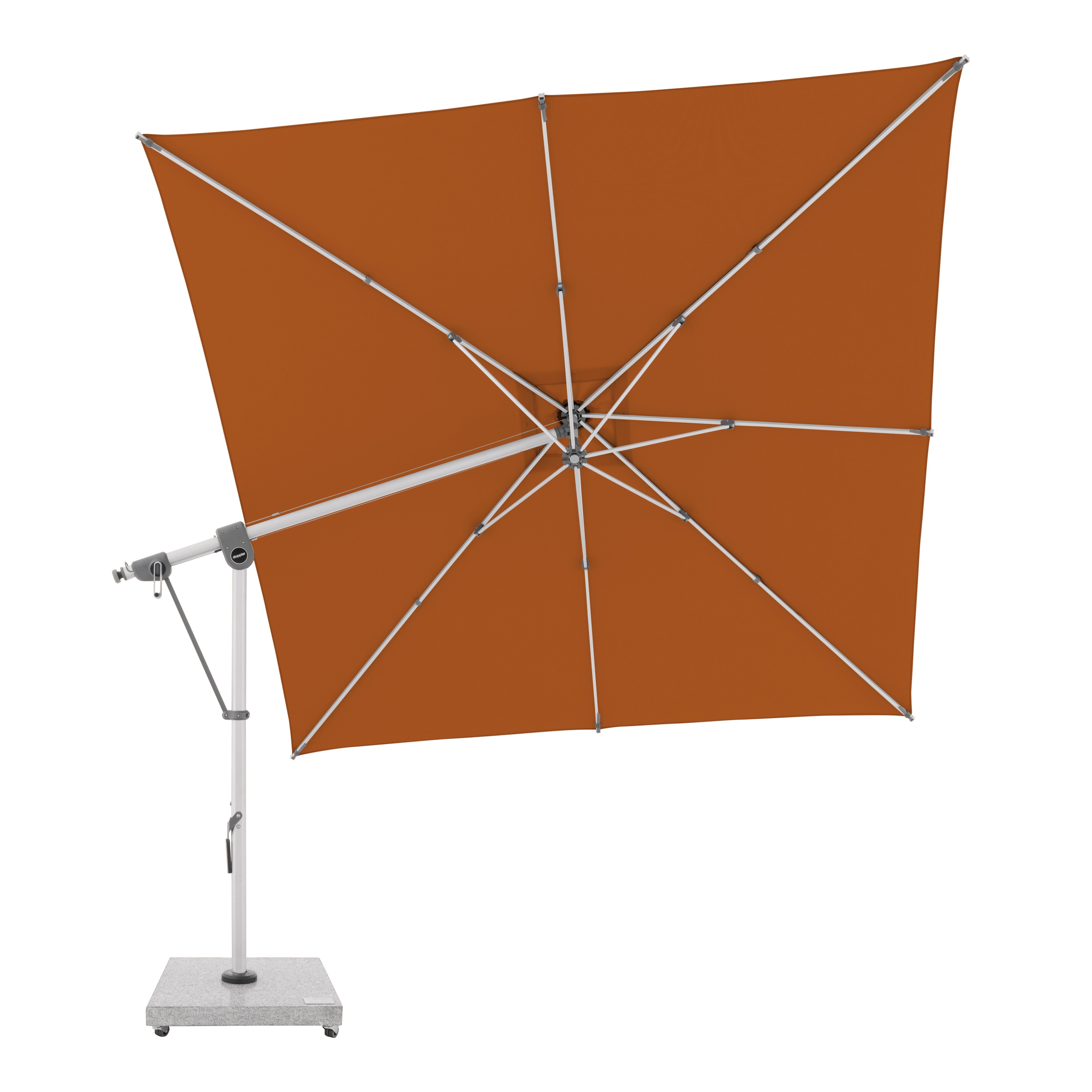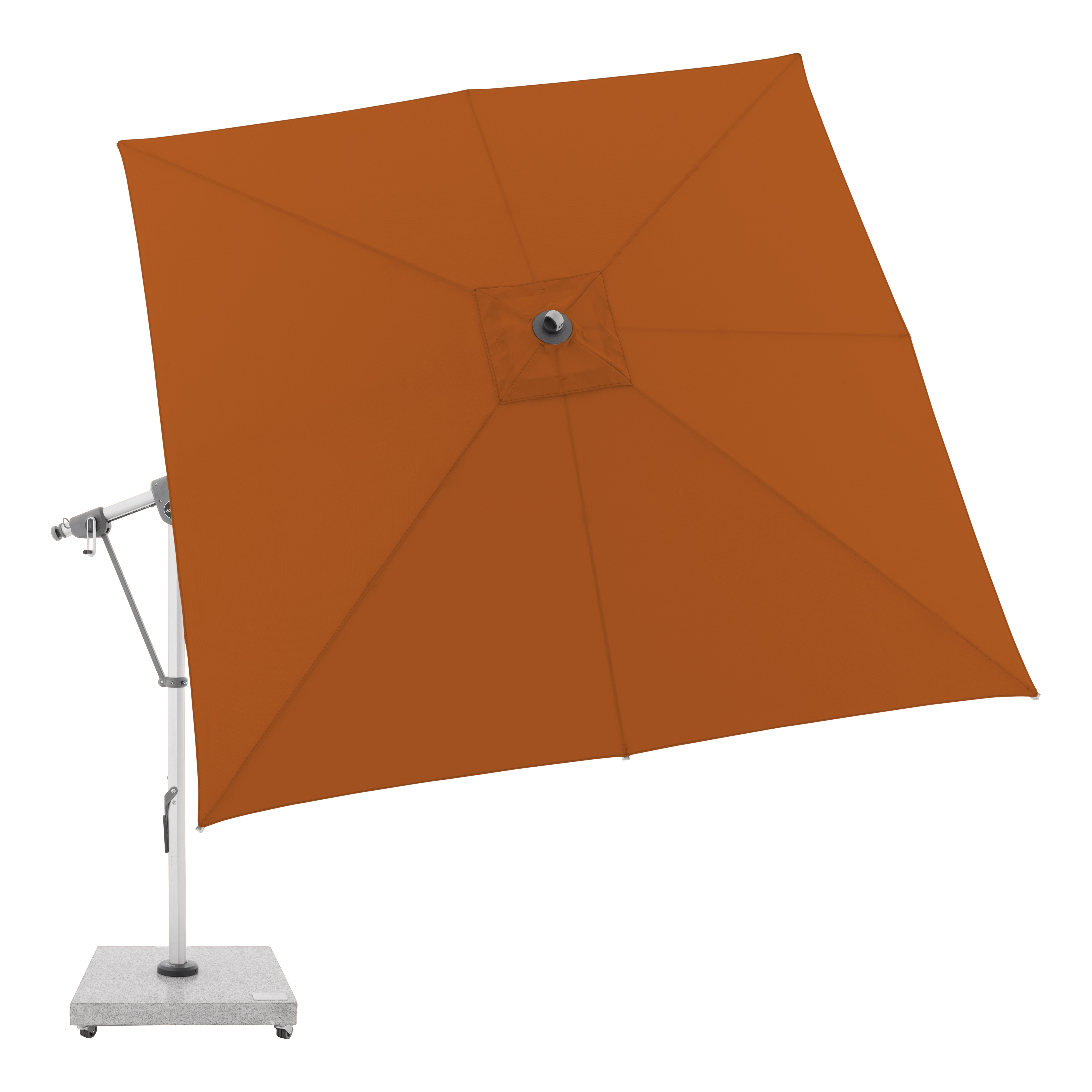 Tento multifunkční výkyvný slunečník s boční tyčí Doppler Expert 3 x 3 m lze optimálně přizpůsobit poloze slunce díky své schopnosti otáčení o 360° a oboustrannému bočnímu naklápění střechy. Konstrukce je vyrobena z vysoce jakostního hliníku a všechny díly jsou šroubované. Potah je vyroben z polyesterové tkaniny odpuzující vodu s dobrou UV ochranou 80+. Potah je snímatelný, s možností ručního praní. Vodoodpudivý potah je s impregnací proti špíně a plísni včetně ochranného obalu, který chrání slunečník před nepřízní počasí. Instalace na žulový sokl nebo zemní kotvu.