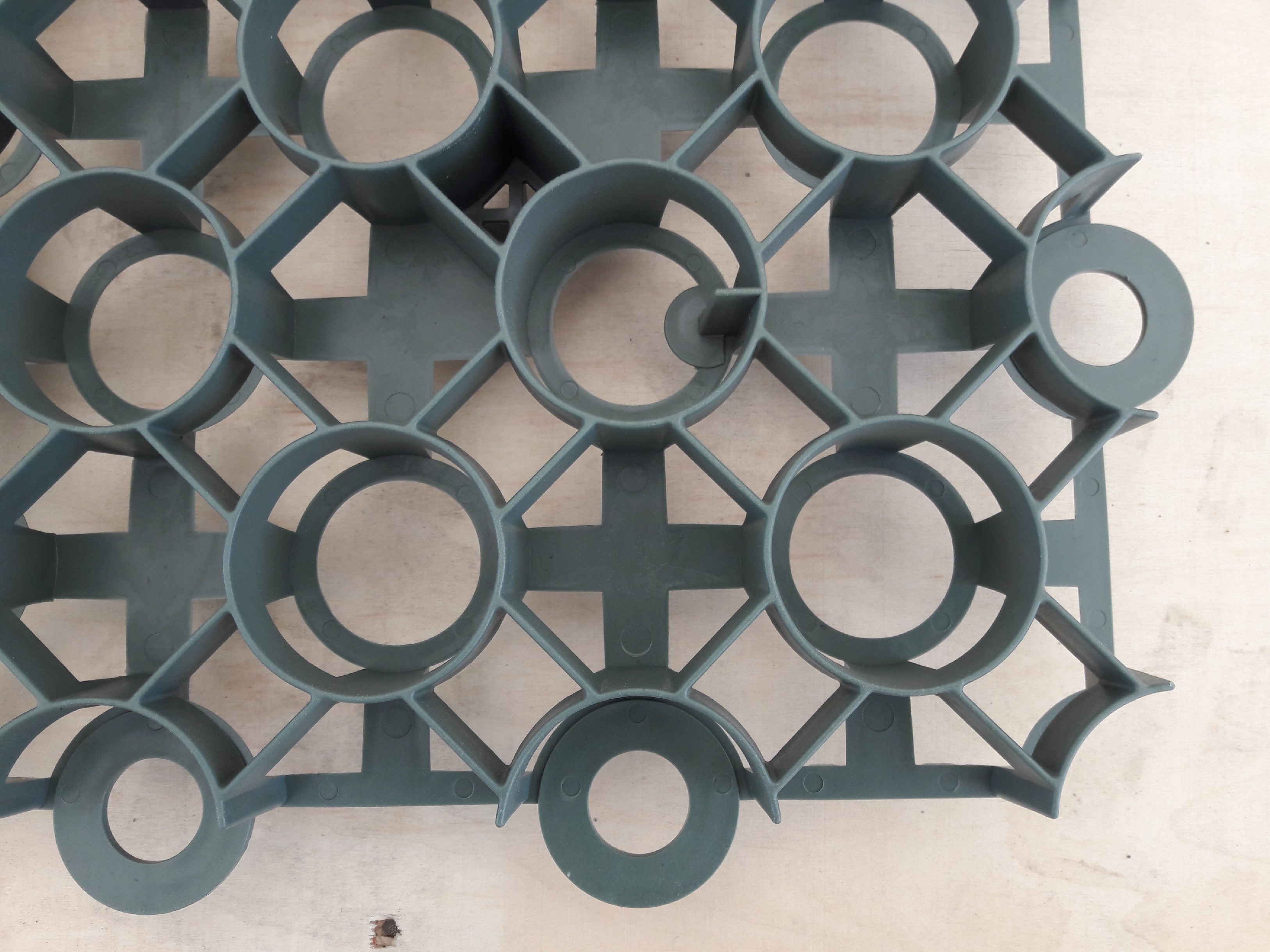 Díky zámkům jsou jednotlivé tvárnice k sobě pevně spojeny a lze je použít i v přechodu do mírných svahů. Pokládku provádějte na vyrovnávací vrstvu, kdy vždy začnete u nejnižšího místa a postupně směřujete k nejvyššímu. Pokud byste i přes dřívější vyrovnání povrchu přeci jen potřebovali nějakou část dorovnat můžete použít hlinitý písek nebo vhodnou směs jemné drtě a písku. Jakmile celou zamýšlenou plochu pokryjete zatravňovací dlažbou, velmi pečlivě si zkontrolujte stabilitu jednotlivých tvárnic. Ty se totiž nesmí hýbat a ani prohýbat. Ignorování tohoto kroku může ve výjimečných případech při větším zatížení zapříčinit prasknutí tvárnic.